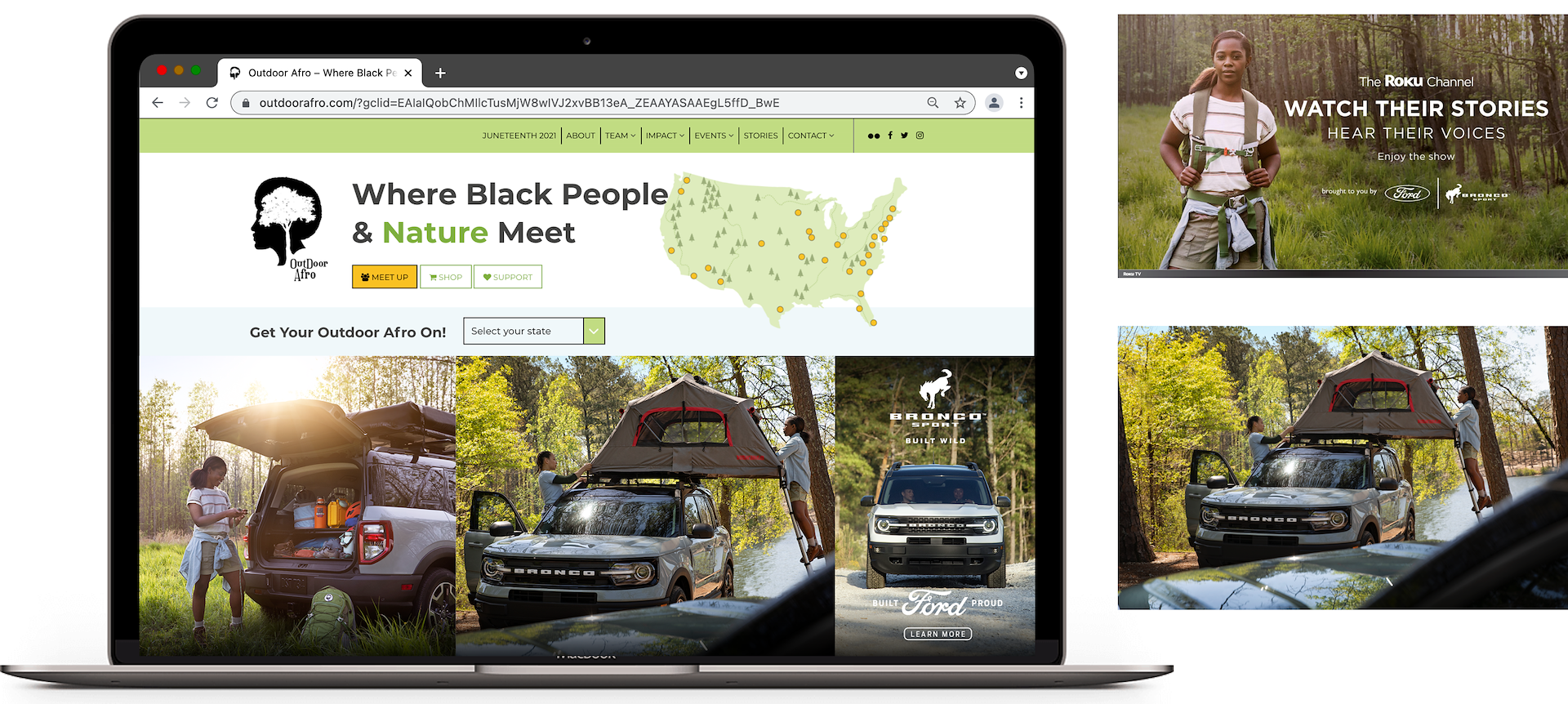 To show Black outdoor culture with Bronco Sport as the central point of divergence, we partnered Ford with three (3) Black outdoor lifestyle organizations – Outdoor Afro, Black Girls Do Bike and Black Girls Run. Each organization embodies the outdoor spirit, while challenging how African Americans are viewed in the outdoor space. Bronco Sport marries the confidence, capability and versatility these organizations embody.