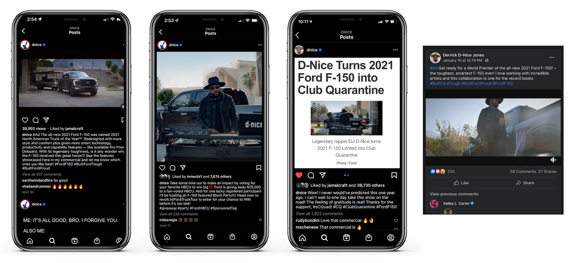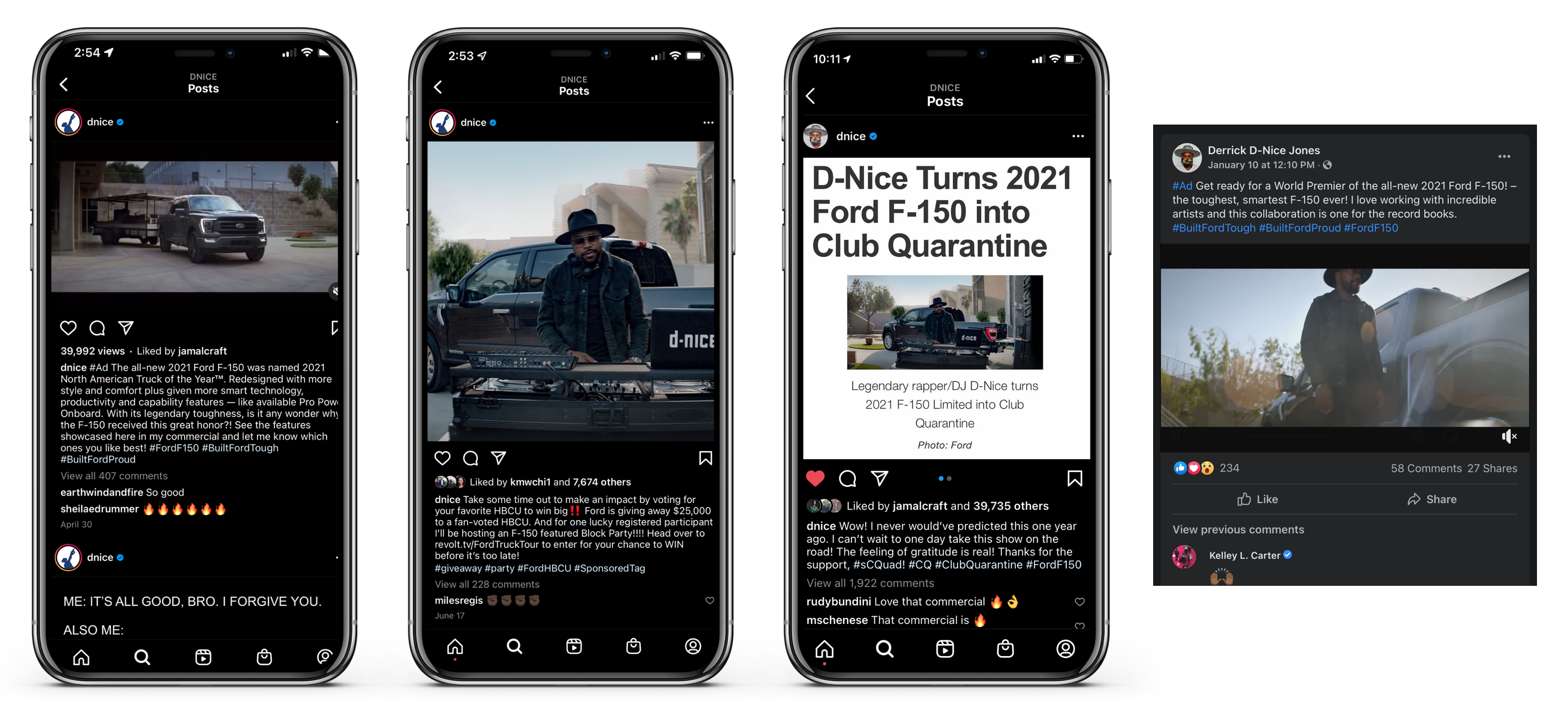 Ford partnered with D-Nice as the embodiment of the spirit represented by the F-150. D-Nice has built his career based on his passion for serving the people. His perseverance and drive has pushed him to constantly adapt and reinvent himself to remain a leader, perfectly aligned to the what the F-150 represents.